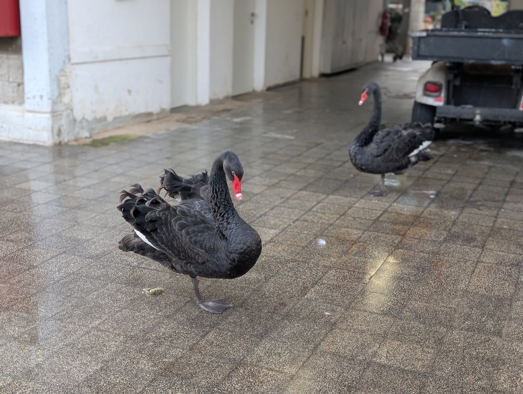А у кормокухни новенькие. Дают себя потрогать и почти дают погладить, уважаю. Интересно, погонят ли их журавли, когда доедят завтрак у пруда и придут за добавкой