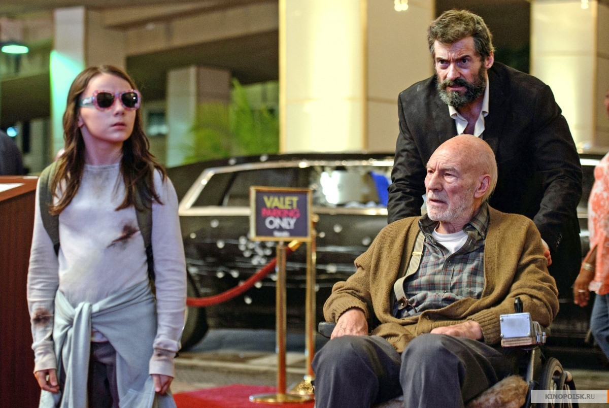 Фильм "Логан", Росомаха, Ксавьер и Двадцать третья едут в простреленном и помятом автомобиле, голодные, бездомные и преследуемые.