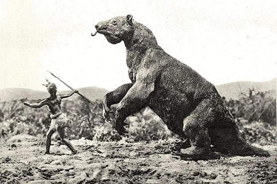 Выкопал ее десять тысяч лет назад гигантский ленивец в Бразилии. Мультик Ледниковый период в целом прав, и мегатерии и мамонты жили в том числе и одновременно, но, боюсь, слишком далеко друг от друга, чтобы растить вместе детей. Да и с махайродом, то есть саблезубым тигром они пересекались только на границах своих ареалов.