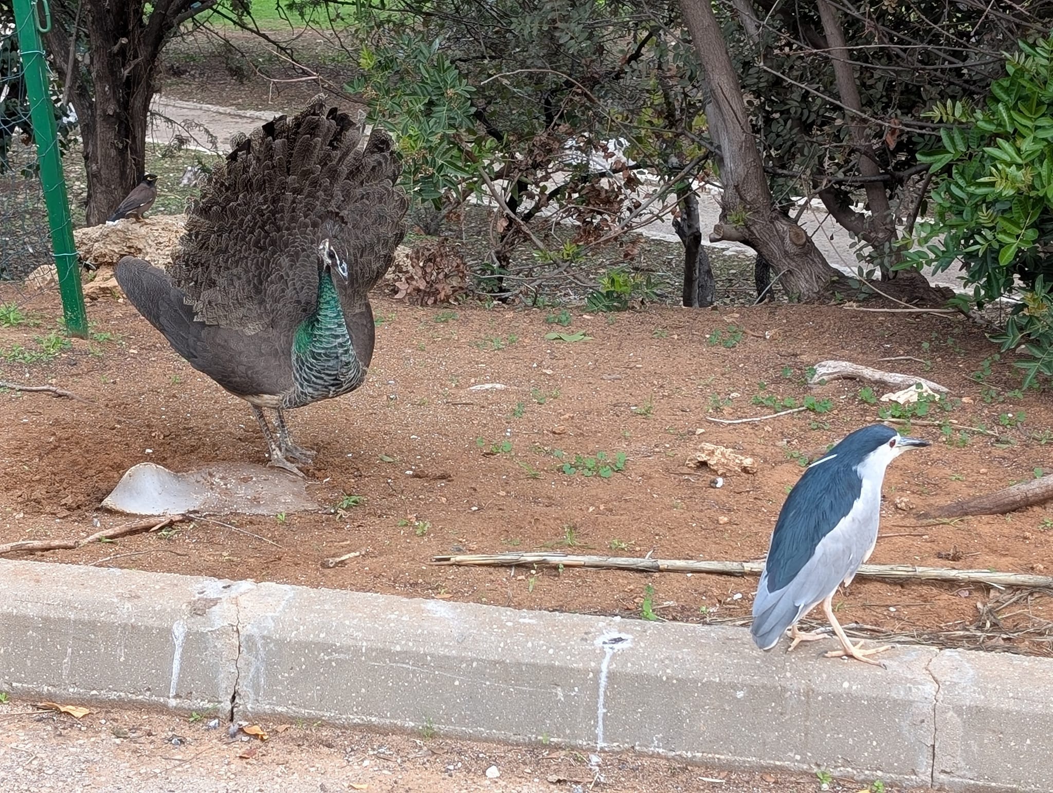 Павлины-подростки внезапно токуют. Только вчера ж вылупились, хвосты еще толком не вылезли, но гормон уже играет .