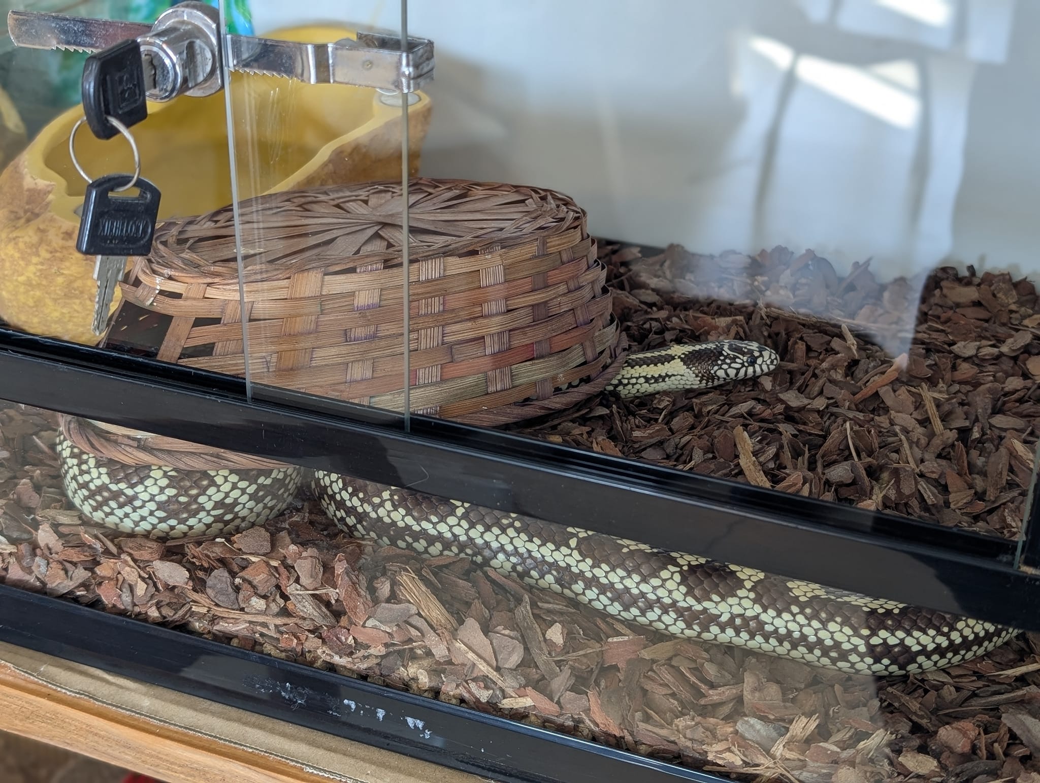 Купаю все поголовье и надраиваю террариумы до зеркального блеска. А то уже стекла заляпали и по дому потянулся затхлый аромат змеюшника. Теперь будет пахнуть сосновой корой и опилочками.