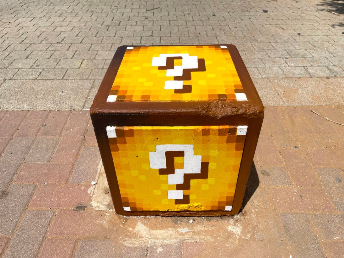 הפכתי את ריבועי הבטון ברחוב בגני תקווה לקוביות משחק של מריו.. בהתחלה שייפתי ואז מרחתי בונדרול ואז סופרקריל מעורבב עם בי ג'י בונד ואז ציירתי עם צבעי סופרקריל ומכחולים.. זה היה אתגר לצייר פיקסל אחרי פיקסל עם מכחול חח בסוף מרחתי כמה שכבות של סילר 755.. החיוכים של התושבים ברחוב והאהבה והפרגון.. פרייסלס.. שיהיה שבוע טוב מלא בצבע ובשורות טובות לכולנו ❤