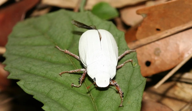 Это, на секундочку, самый белый жук в мире (никакого расизма, только факты). У жуков рода Cyphochilus верхний слой панциря толщиной всего в двухсотую долю миллиметра так хорошо отражает свет, что листу офисной бумаги потребуется быть вдвое толще, чтобы добиться такой же белизны.