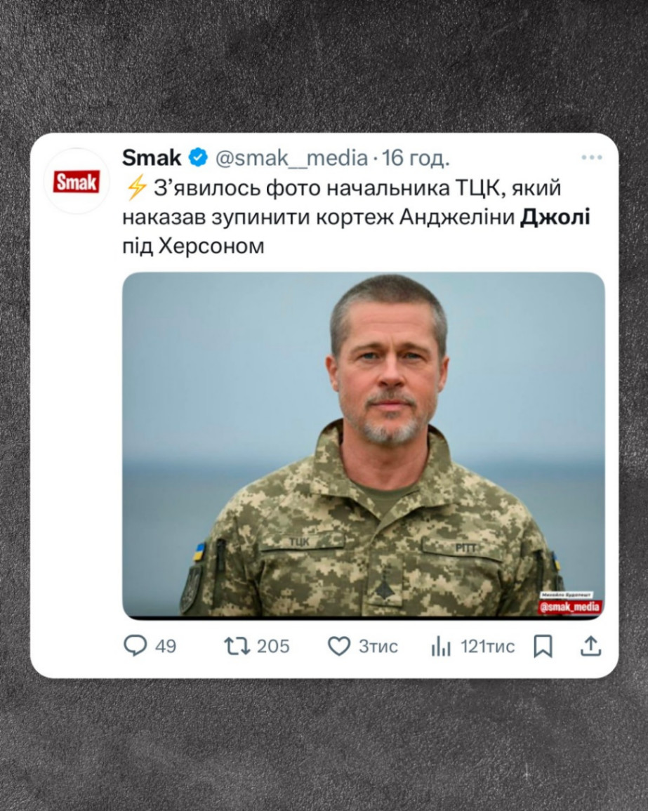 Після новин про візит Анджеліни Джолі до Херсона та історію з її охоронцем у ТЦК, у соцмережах з’явилося безліч мемів. Ми зібрали найкумедніші з них