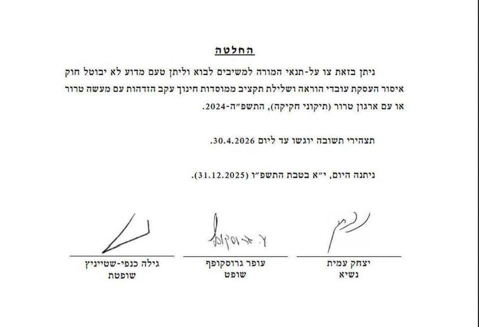 БАГАЦ остановил закон, разрешающий министерству образования, прекратить работу учителей поддерживающих террор. И затребовал объяснить, почему учителя поддерживающие террор не могут учить детей. Действительно. Почему? Судьи не понимают🤷♀